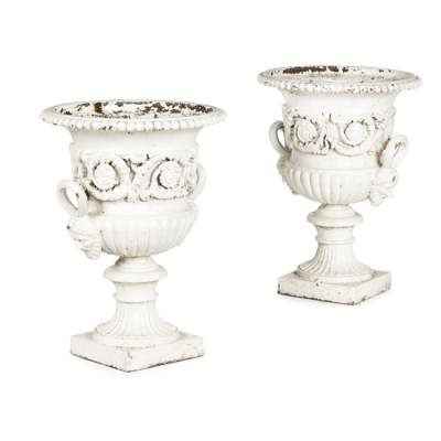 PAIR OF VICTORIAN PAINTED CAST IRON URNS