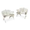the curved backs and legs cast with ferns, with wood slat seats, painted white (2)