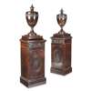 PAIR OF ADAM STYLE MAHOGANY URNS AND PEDESTALS