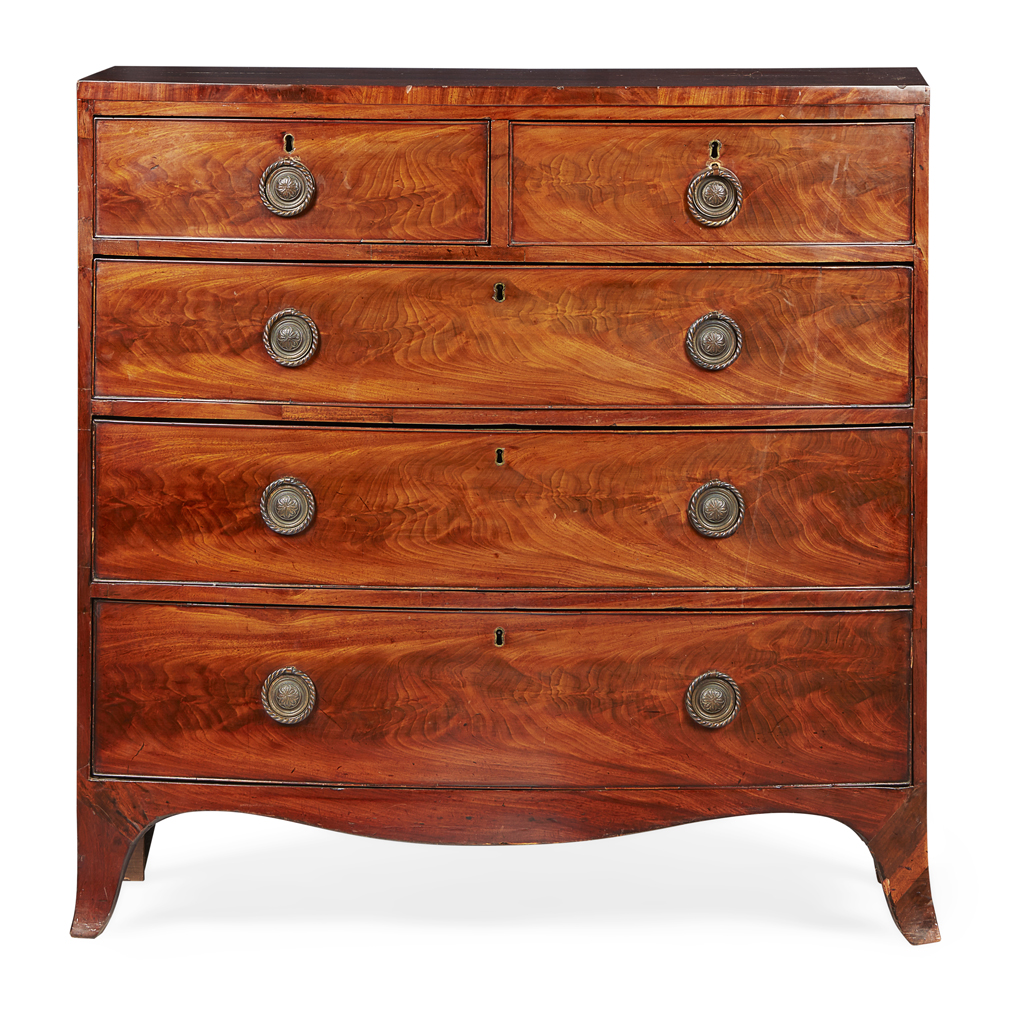 LATE GEORGE III MAHOGANY BOWFRONT CHEST OF DRAWERS