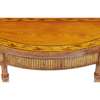 the crossbanded demilune tops banded with floral marquetry, opening on double gatelegs to red baize lined playing surfaces above fluted friezes marked with sunflower medallions, raised on later turned and fluted tapered legs (2)