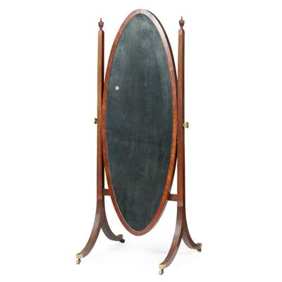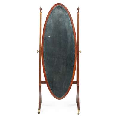 LATE GEORGE III STYLE MAHOGANY CHEVAL MIRROR