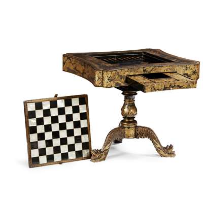GOOD CHINESE EXPORT BLACK LACQUER AND GILT GAMES TABLE