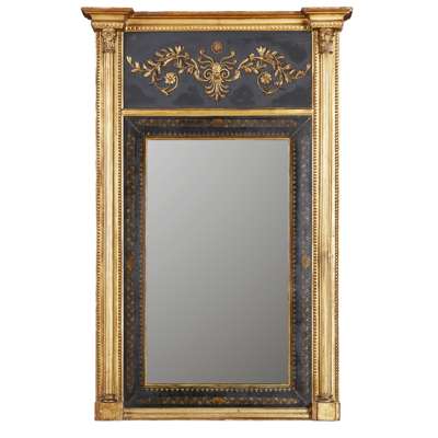 REGENCY GILTWOOD, GESSO AND EBONISED PIER MIRROR
