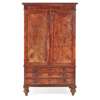 the moulded cornice above a pair of panel cupboard doors opening to a void interior, the base with three shallow long drawers, raised on later turned feet