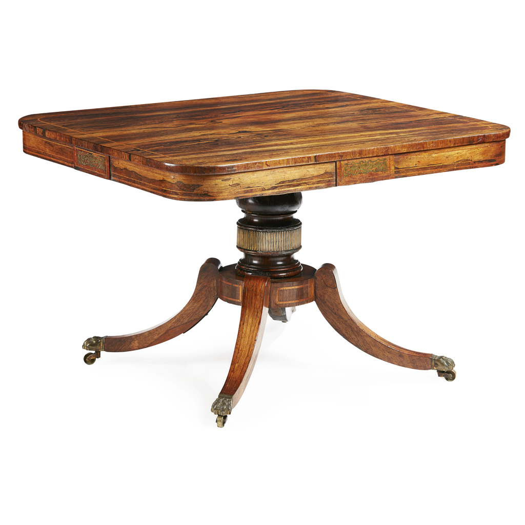 REGENCY ROSEWOOD, SATINWOOD BRASS INLAID BREAKFAST TABLE