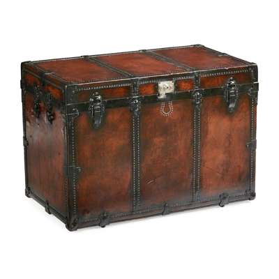 EDWARDIAN LEATHER COVERED STEAMER TRUNK