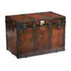 with a hinged top, covered allover in brown banded leather with nail head trim