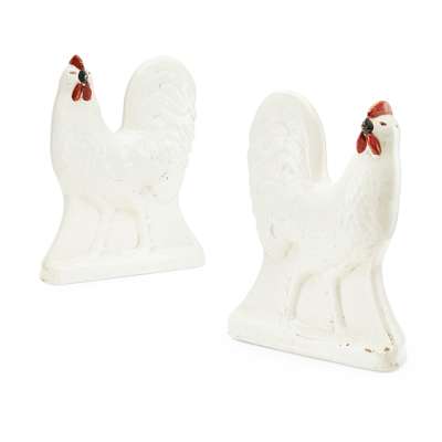 white glazed with red painted combs and wattles, traces of gilt (2)