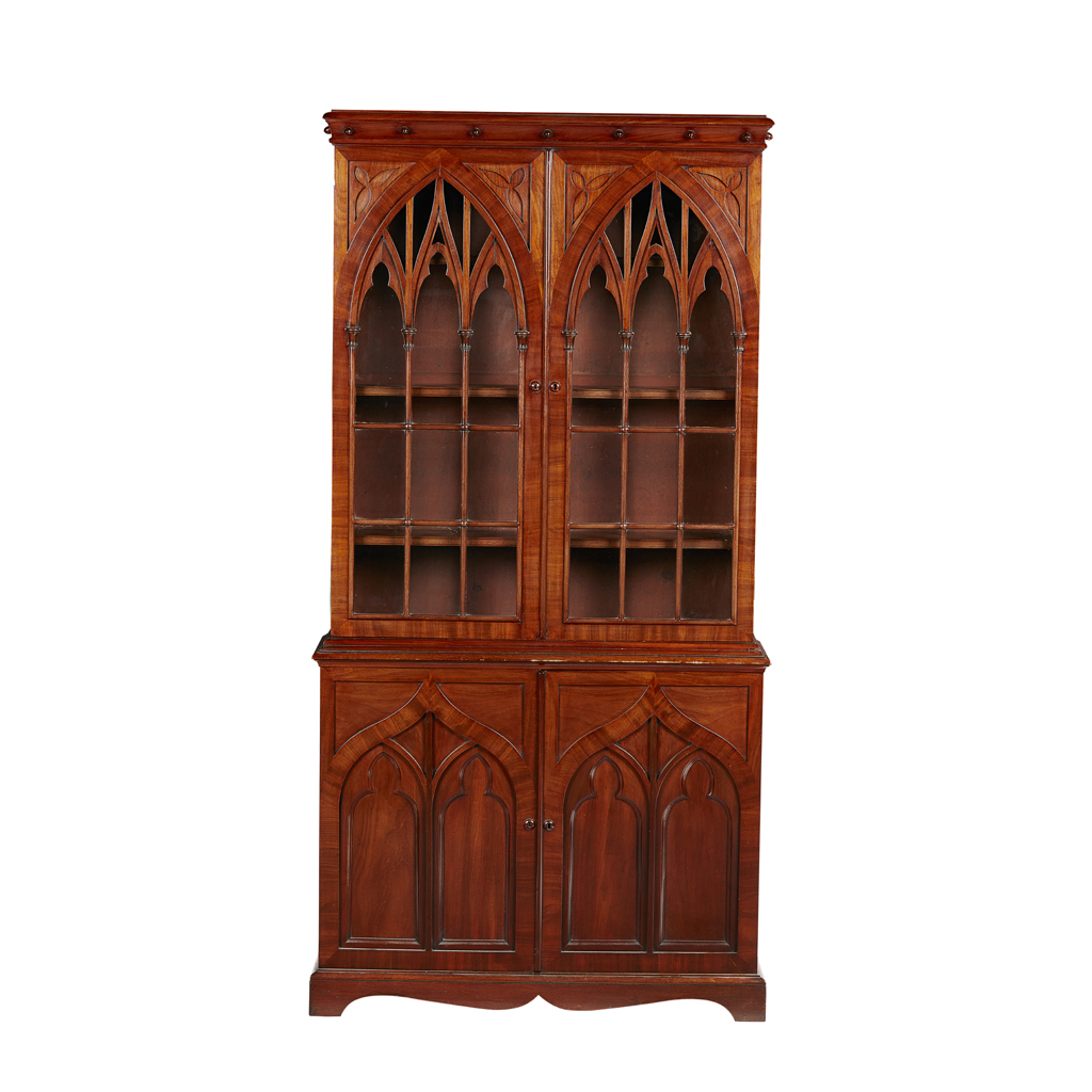 VICTORIAN MAHOGANY GOTHIC REVIVAL BOOKCASE CABINET