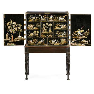 GEORGIAN BLACK JAPANNED CABINET ON STAND