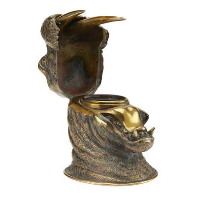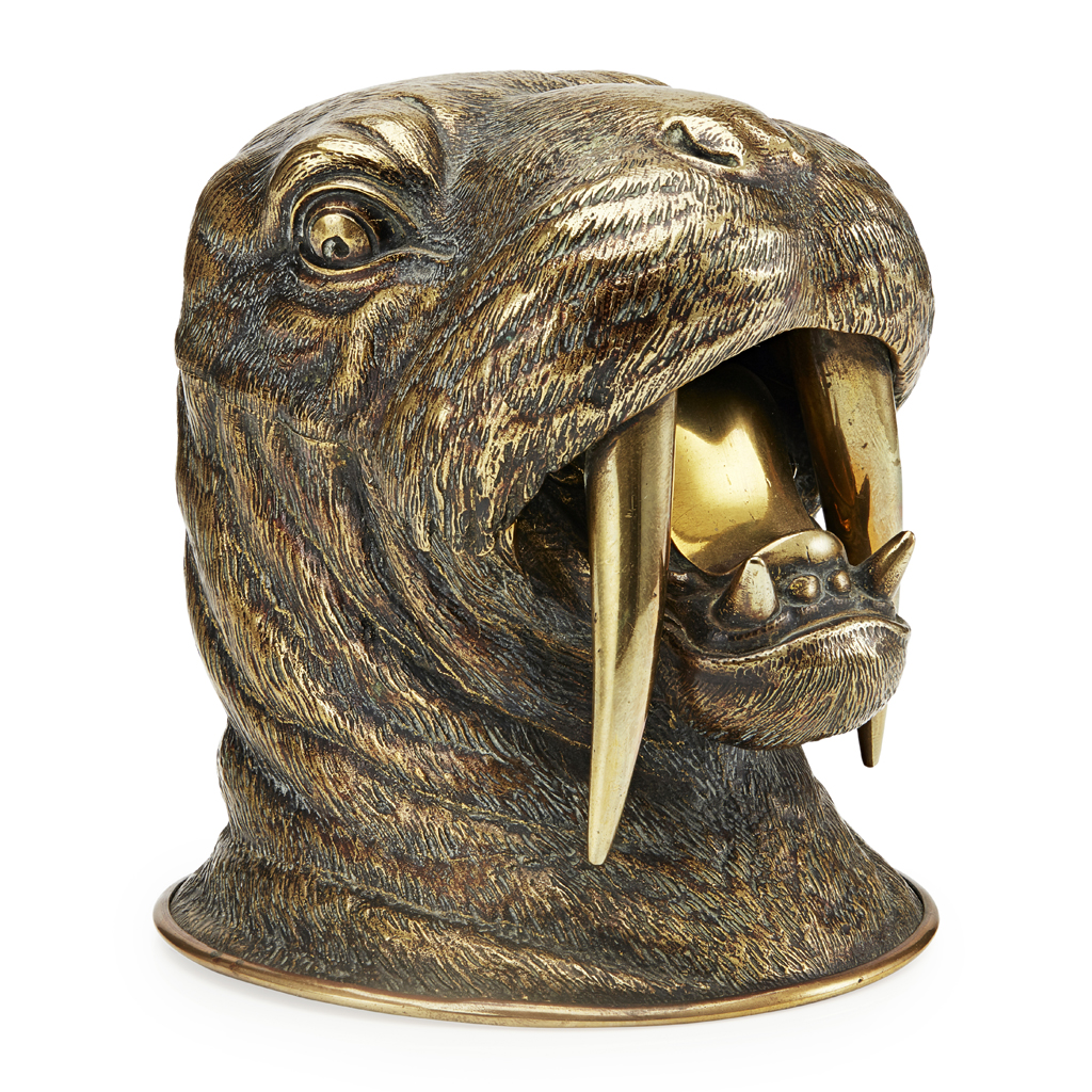 VICTORIAN NOVELTY BRASS INKWELL, IN THE FORM OF A WALRUS