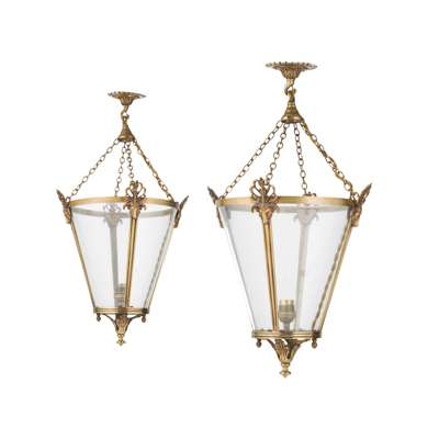 PAIR OF NEOCLASSICAL STYLE GILT METAL HALL LANTERNS