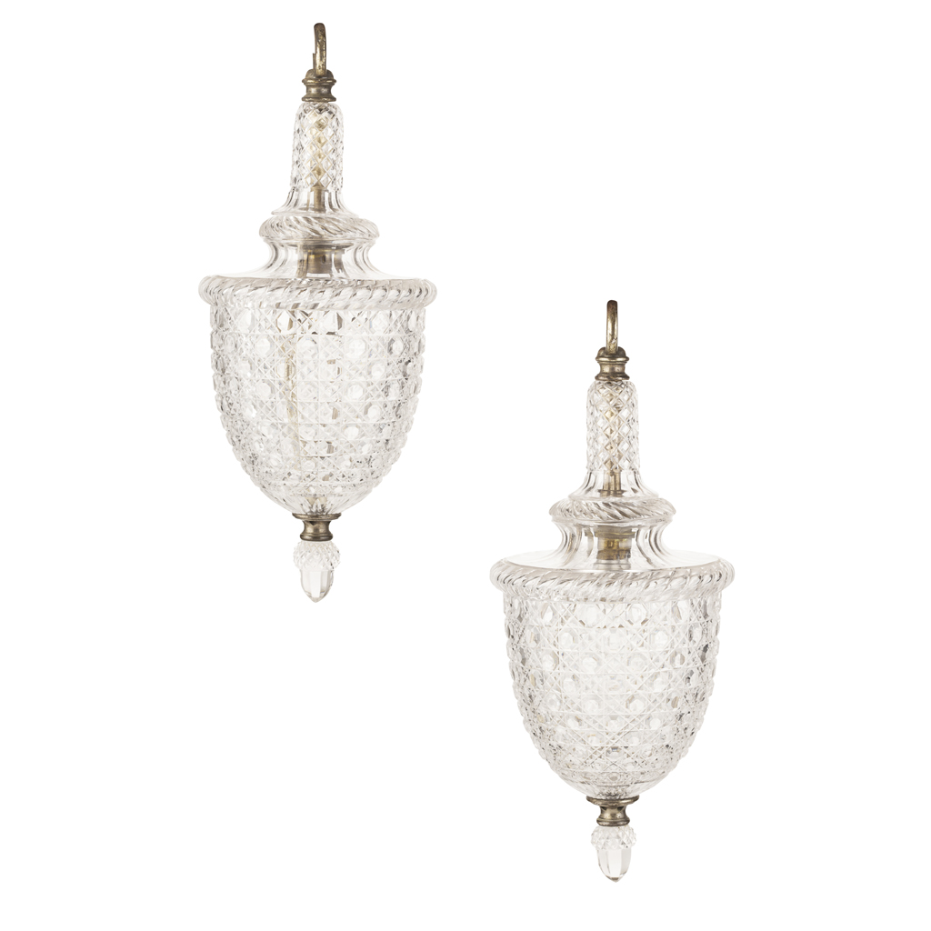 PAIR OF OSLER CUT GLASS PENDANT LIGHTS