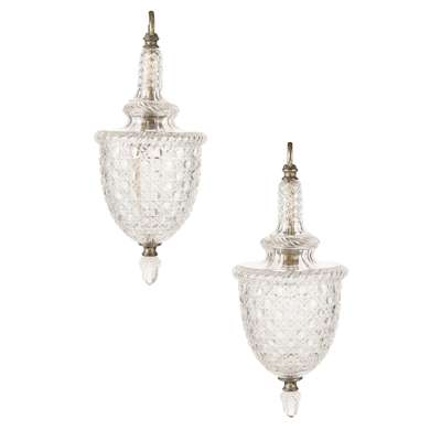 inverted bell shape with hobnail cut sides and covers, and cut glass acorn pendant finial (2)