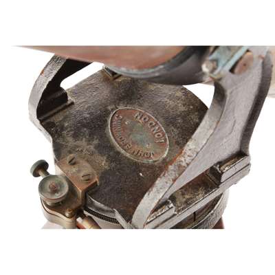 marked JOHN BROWNING/ LONDON, with a spotting scope, raised on a wooden tripod with a worm screw for horizontal adjustment