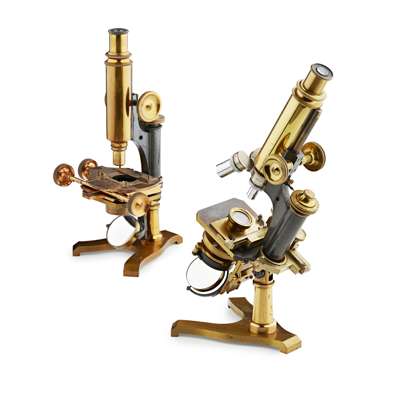 TWO BRASS MONOCULAR COMPOUND MICROSCOPES, BY J. LIZARS, GLASGOW