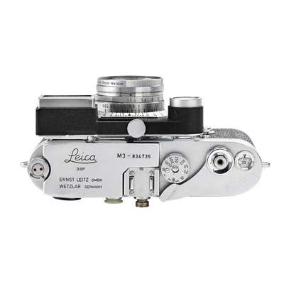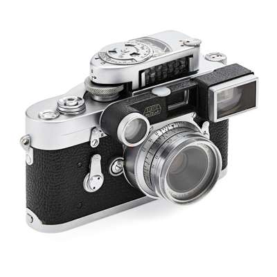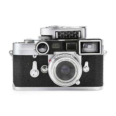 serial no. 834735, with Summaron F = 3.5cm (35mm) 1:3.5 lens, serial no. NR1487389, with a spectacle rangefinder; an Ernst Leitz UV filter; a light meter, serial no. 20928; film cassette; and original leather case