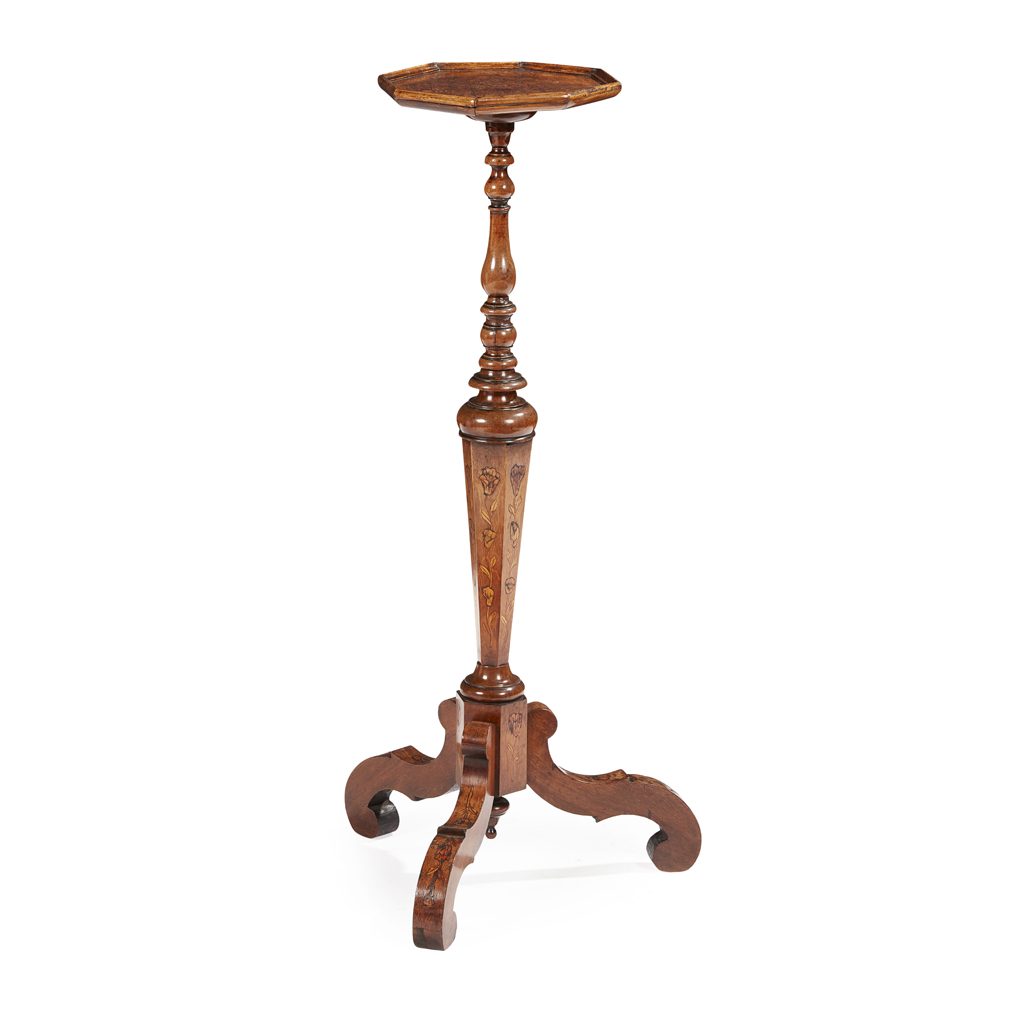DUTCH WALNUT AND MARQUETRY CANDLESTAND