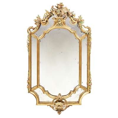 CONTINENTAL POLYCHROME AND GILT MIRROR