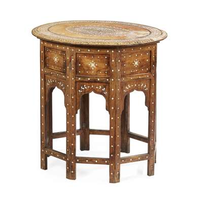 MIDDLE EASTERN HARDWOOD, EBONY AND IVORY INLAID OCCASIONAL TABLE Y