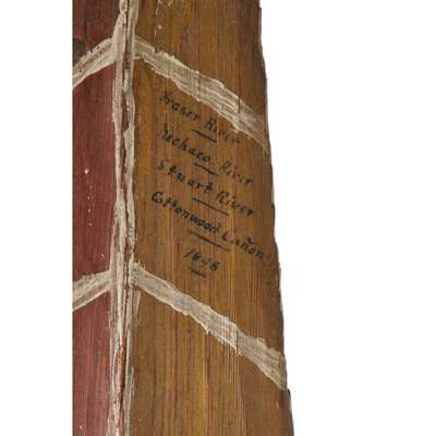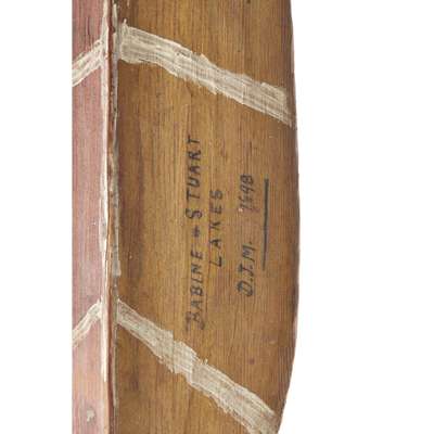 Note: Duncan Macpherson of Glentruim left his family castle in Newtonmore, Scotland in the 1880s to prospect for gold in British Columbia and spent most of his working life in Canada and a time in Mexico returning to Scotland in later life bringing back souvenirs of his travels. His river adventures and the rivers he traveled are clearly written in ink with his initials and date making a very rare dated paddle possibly of the Athapaskan tribe.