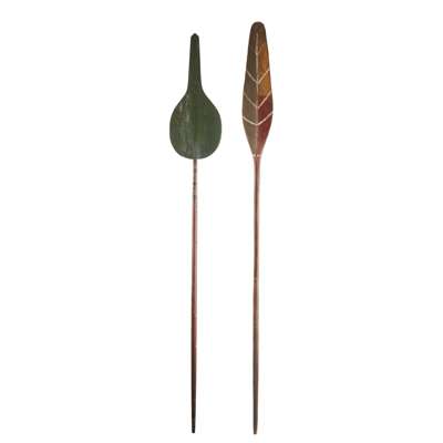 The paddles are from north central British Columbia in the area of the Dakelh. This group has also been called Carrier in the past and is part of the Athapaskan language family. The paddle is also similar to those found among the Kwakwaka'wakw, Haida and Tsimshian indigenous peoples of British Columbia.