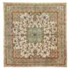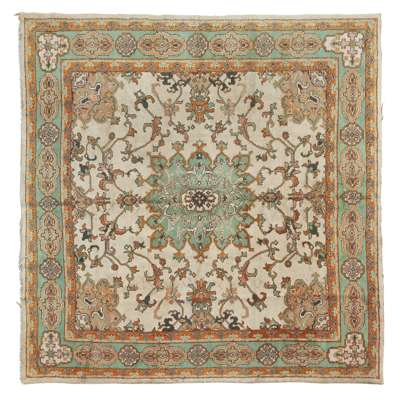 the cream field with green medallion, brown spandrels, within green cartouche border