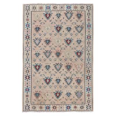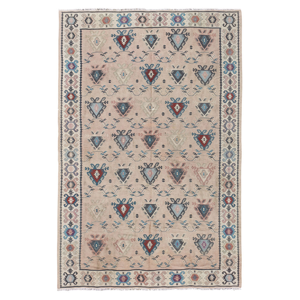 the cream field with stylised palmette and wavy vine pattern, within cream hooked hexagon border