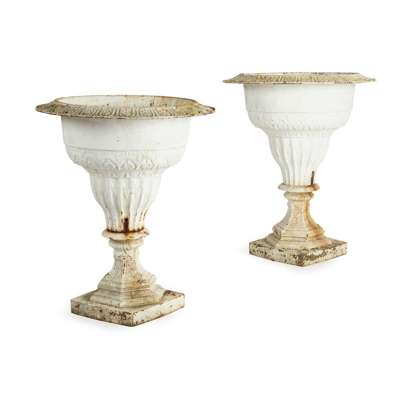 PAIR OF VICTORIAN GOTHIC REVIVAL CAST IRON GARDEN URNS