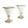 of tapered bell form with everted rims above fluted and foliate cast bodies, raised on hexagonal socles with square bases (2)