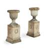 PAIR OF SCOTTISH FIRECLAY URNS AND PEDESTALS, BY J. & M. CRAIG, KILMARNOCK