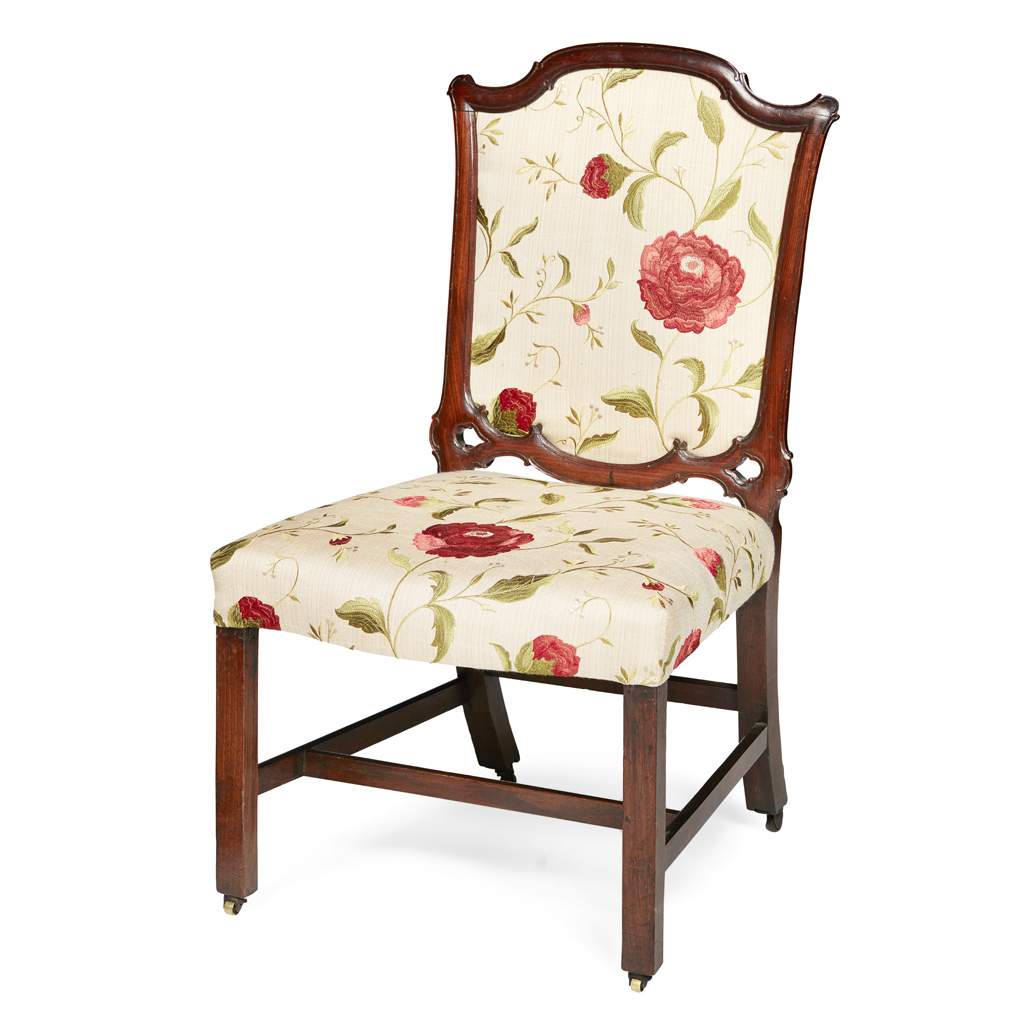 RARE GEORGE III MAHOGANY UPHOLSTERED SIDE CHAIR