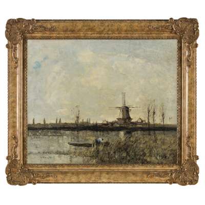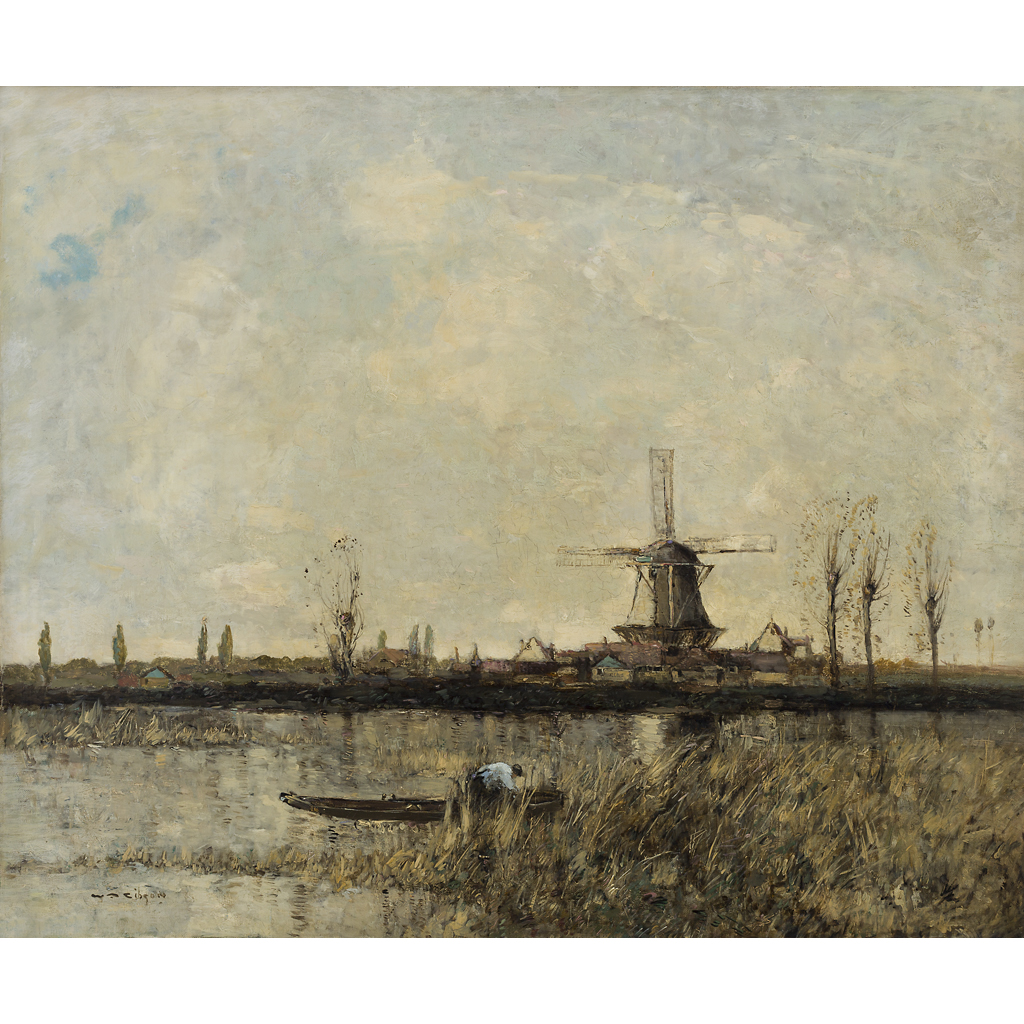 A DUTCH RIVER LANDSCAPE WITH A FIGURE IN A PUNT
