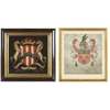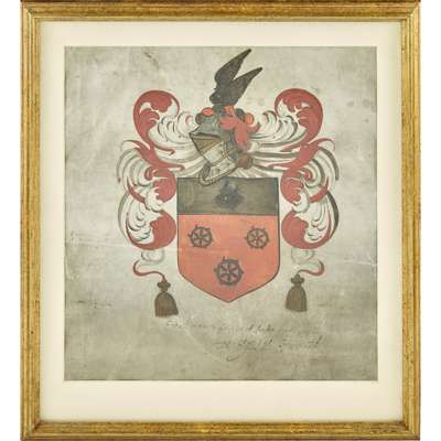 oil on canvas laid down on board, depicting motto PER ACVTA BELLE., 31.5cm squared; together with a further PAINTED COAT OF ARMS, watercolour, with indistinct inscription, 27.5 x 25cm (2)