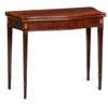the crossbanded serpentine fold-over top above a fluted frieze, raised on slender square tapered legs with fan medallion inlay