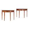 the crossbanded tops over single frieze drawers, raised on square tapered legs with line inlay (2)
