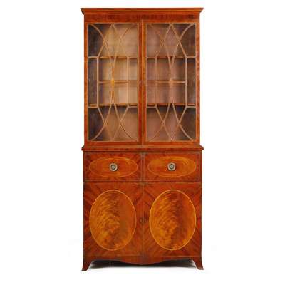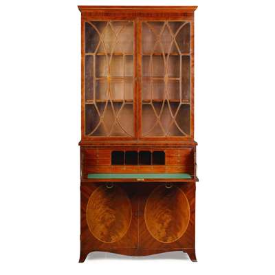 LATE GEORGE III MAHOGANY AND INLAY SECRETAIRE BOOKCASE
