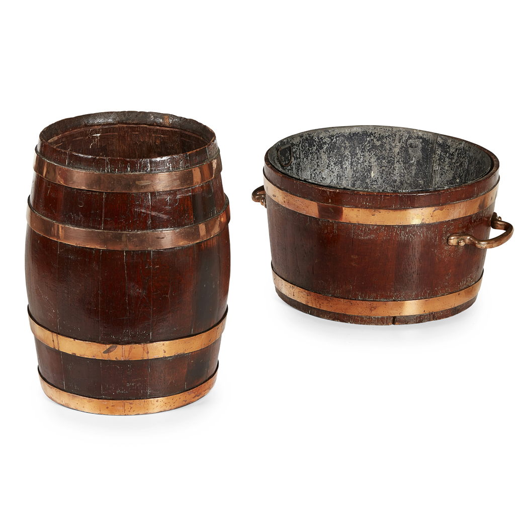 TWO OAK AND COPPER BANDED STAVED CONTAINERS