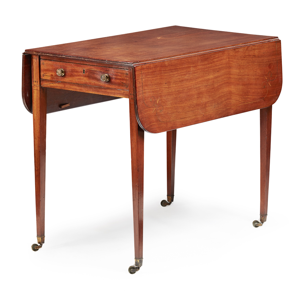 LATE GEORGE III MAHOGANY AND INLAY PEMBROKE TABLE