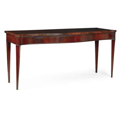 LATE GEORGE III MAHOGANY SERPENTINE SERVING TABLE