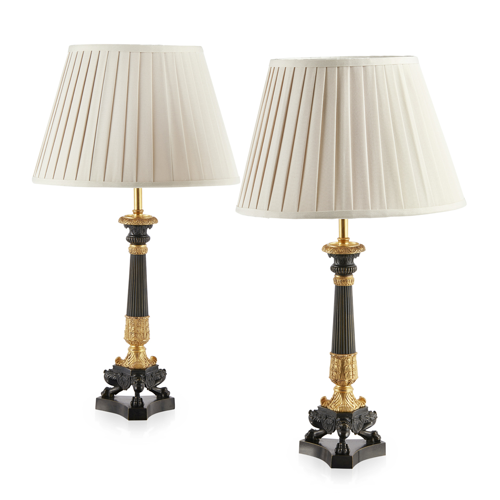 PAIR OF REGENCY GILT AND PATINATED BRONZE LAMPS