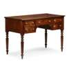 the rectangular top with a reeded edge above a centre drawer and arched recess flanked by banks of two short drawers, with dummy drawers opposing, on turned and reeded legs headed by reeded corner blocks
