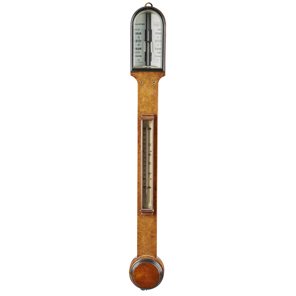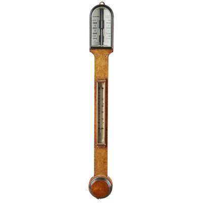 WILLIAM IV AMBOYNA AND EBONY STICK BAROMETER BY ELLIOT BROS. Y