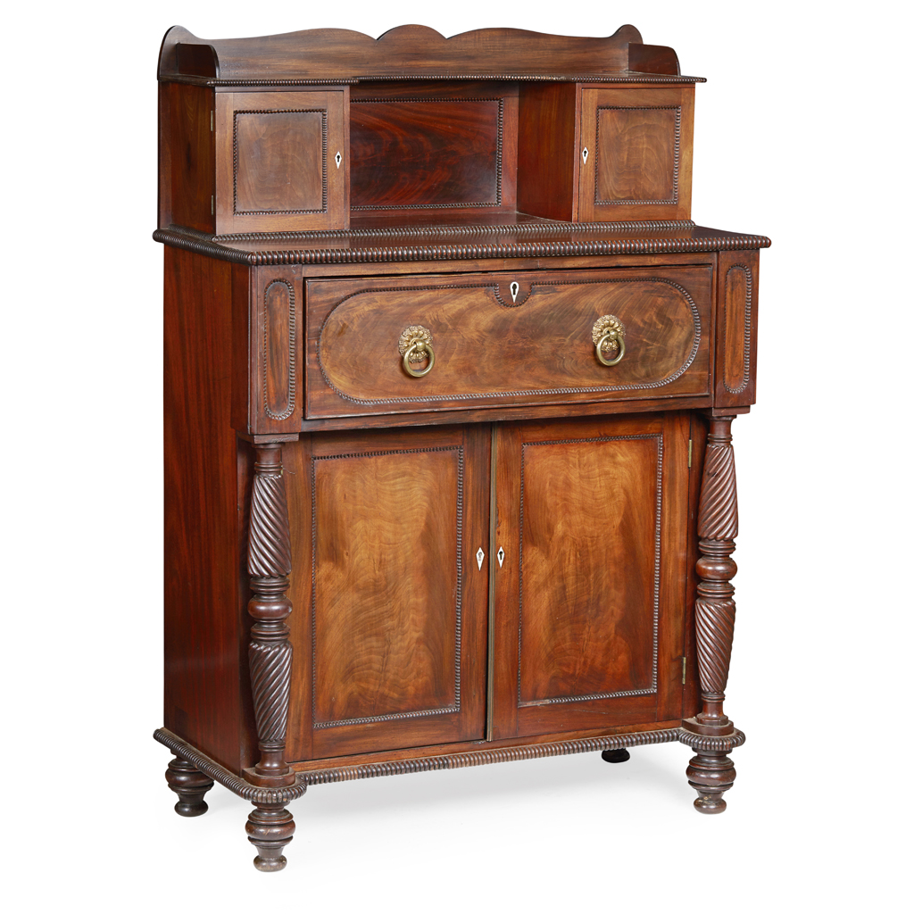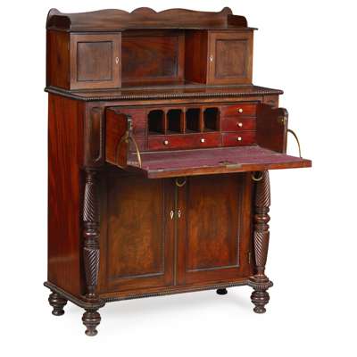 IRISH LATE REGENCY MAHOGANY SECRETAIRE CHEST OF DRAWERS