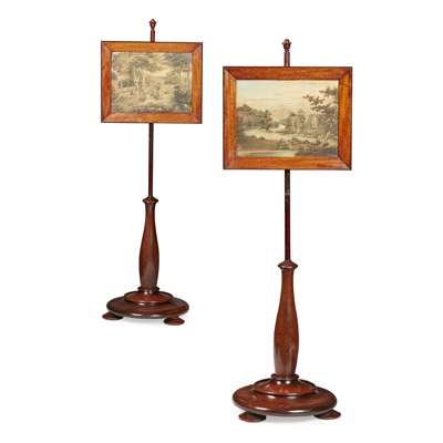 PAIR OF WILLIAM IV MAHOGANY POLE SCREENS