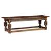 the long plank top with cleated ends, above a scroll carved frieze and raised on lobed cup and cover legs joined by peripheral stretchers