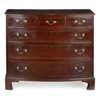 the bowfront top with a moulded edge above three short drawers over three long graduated drawers with line inlay, on shaped bracket feet