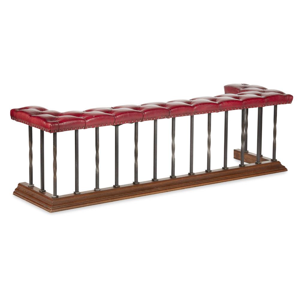 STEEL AND LEATHER UPHOLSTERED CLUB FENDER
