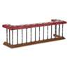 the red leather button upholstered seat rail raised on twisted and straight supports, on an oak moulded base
